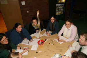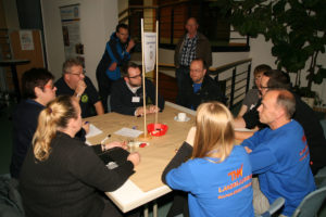 Anschließend berichteten die Bundesjugendleitung und die Referenten von den Arbeitsschwerpunkten in den vergangenen Monaten. Im Zentrum standen dabei die Mitarbeit an der neuen THW-Richtlinie, die Aufnahme in den Deutschen Bundesjugendring und eine Kampagne zur Erhöhung der Übertrittsquote von Jugendlichen in den aktiven Dienst. Zum Abschluss des ersten Tages diskutierten die Delegierten dann an acht Tischen aktuelle Themen, die derzeit die THW-Jugend beschäftigen.